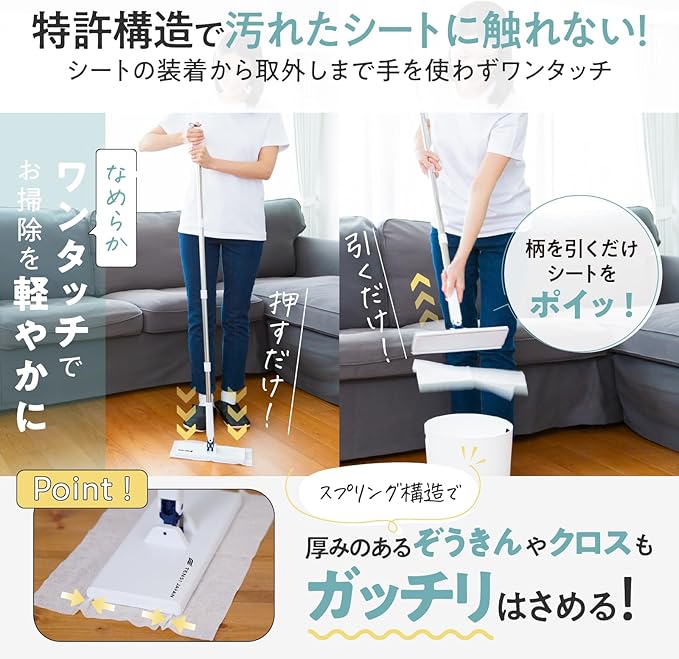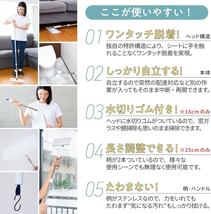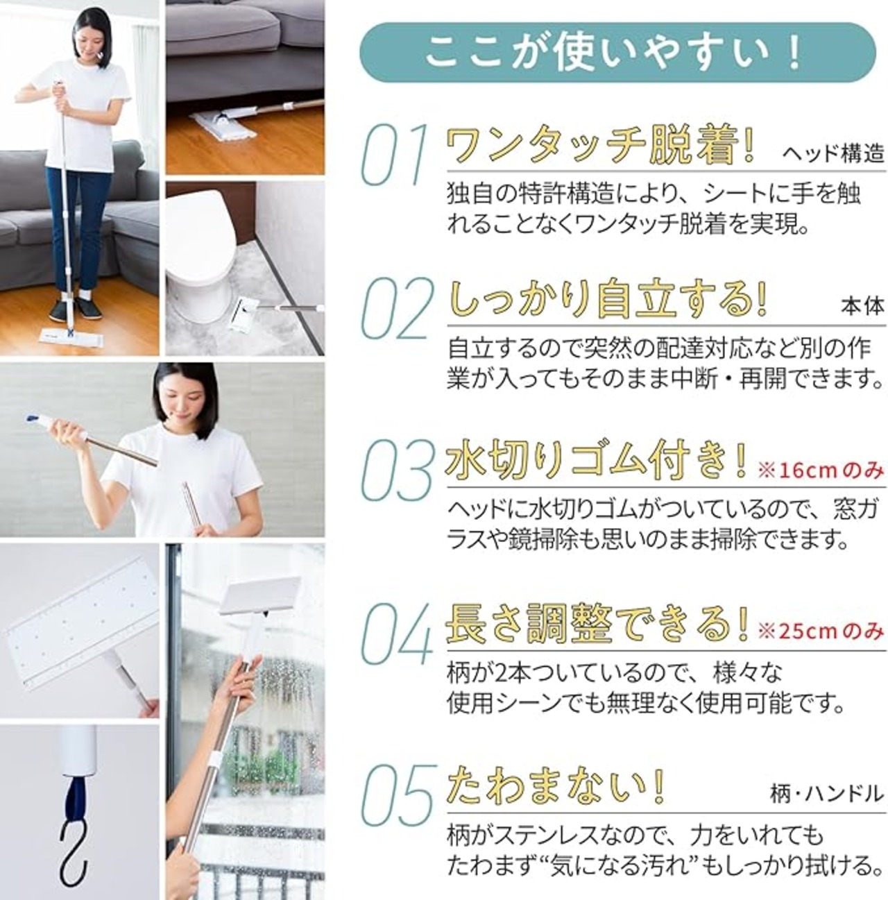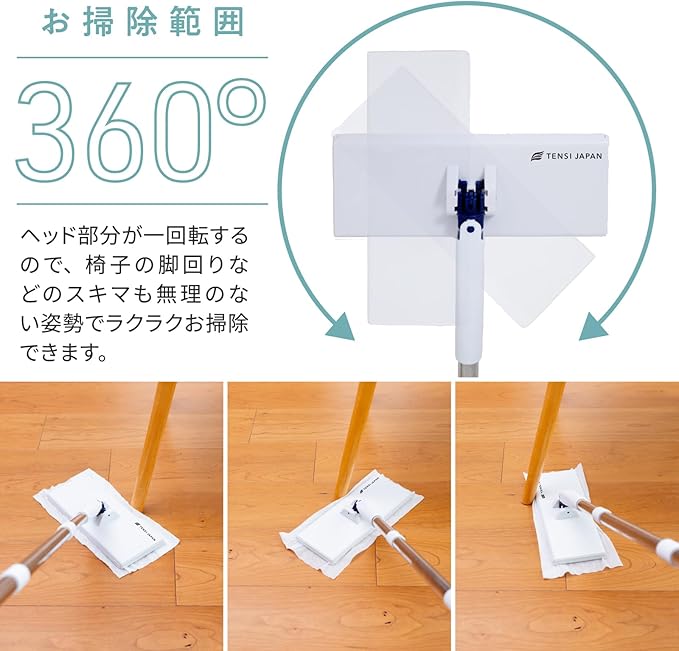 TENSI JAPAN ワンタッチ着脱 シート選ばず フロアワイパー 自立型 天使のワンタッチクリーパー (25cm)