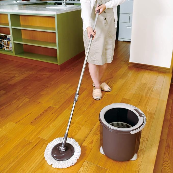 【コンパクトに進化 !】従来の回転モップは二槽式で大きく、収納に不便でしたが、バケツを一槽式にして小型化を実現しました。