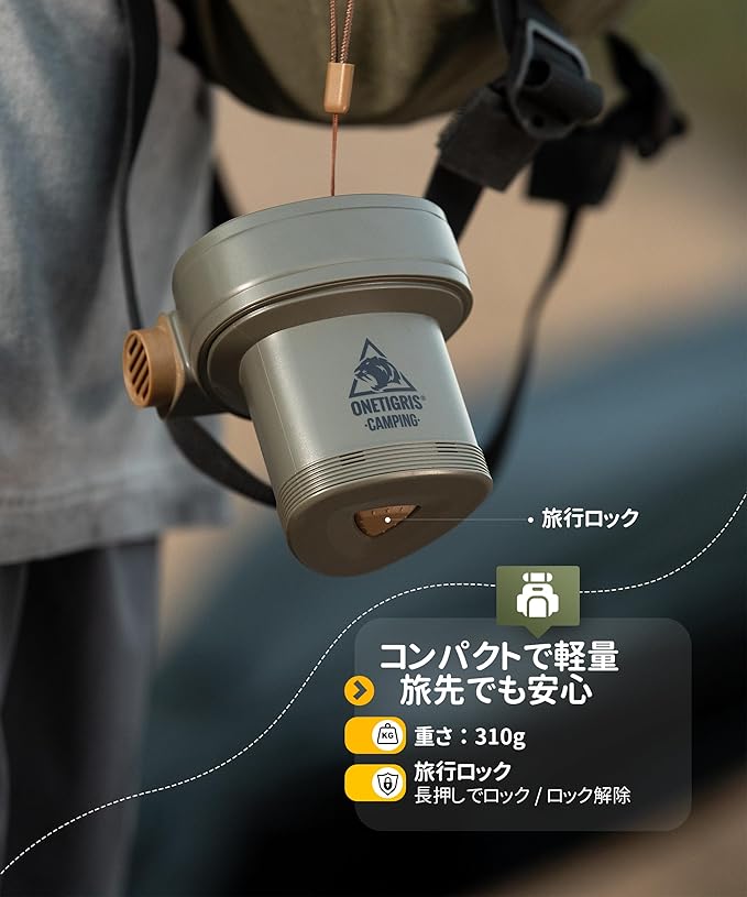 【大容量4000mAhバッテリー】4,000mAhの大容量バッテリーを内蔵し、Type-Cの充電スタイルにより急速充電が可能。空気入れと空気抜きの両方の機能を備えており、キャンプに必要なインフレータブルギアを給気と排気することができ、キャンプの始まりから終わりまで活躍します