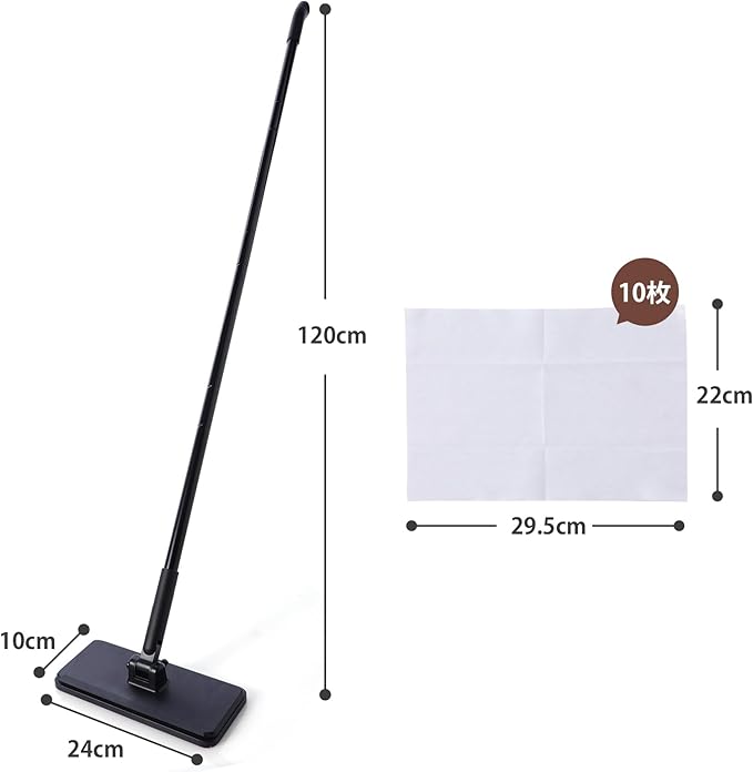 【セット詳細】:本体サイズ:24.0 10.0 120.0cm 重量:545g。フロアワイパー:本体1個;付属品: 取替えシート10枚入り。 【長さ調整可能】:フロアワイパーは、掃除の場所によって組み立てられるパイプの本数を変え、柄の長さを調整することができます。