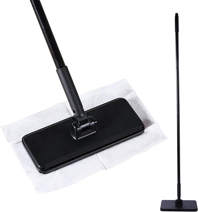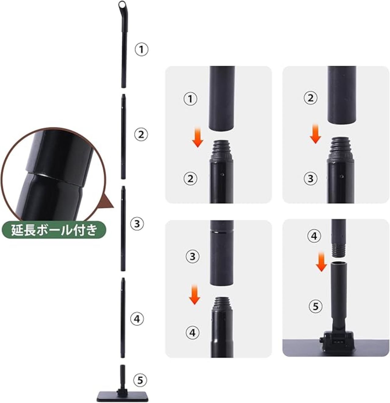 【いいデザイン】:シートと雑巾は自動で挟み込めます。ヘッドが360度回転できるので、使いやすいです。付属の使い捨てシートは、吸水性に優れ、髪の毛・ホコリか取り込みやすいです。フロアワイパー自体は軽くて片手でも操作できるので、毎日簡単に掃除ができます。持ち手部分には、フックを通せる穴が開いていますので、使わない時は、便利に壁に掛けて収納もできます。
