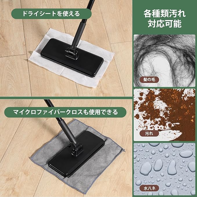 【2in1多機能水切りワイパー】:水切りワイパー付きのデザインは、より良い細いゴミ、ホコリや髪の毛などを収集することができます。更に、窓、鏡、壁、地面、天井の水気集まり、汚水掃除もかなり簡単に実現できます。