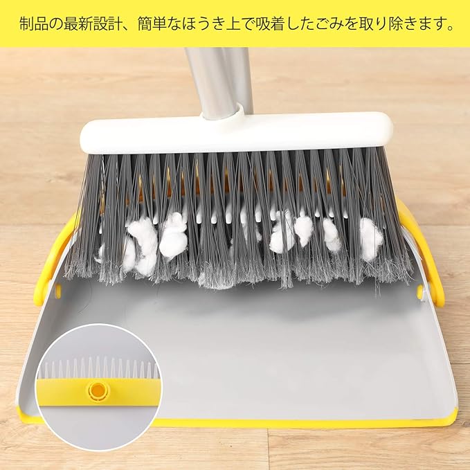 【品質高いほうきちりとり】4層PETラインはPET素材の織り込み密度が高く、柔軟性の高い毛先に最適です。広い範囲で掃除ができます。4層の織物は効率よく掃除できます。寿命が長く、水洗いもできます。とても便利です。ほうきにはアークがあり、ごみをきれいにしやすく、ちりとりの底のTPR材料は地面に近く、細かいごみをうまく制御できます。数多くの種類の汚れ、ほこり、破片、ペットの髪などが掃除できます。