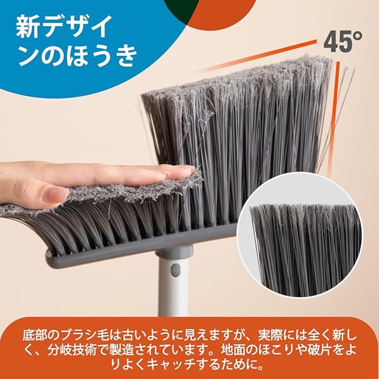 【自由調節 延長ポール付き】人体デザインに適合、ほうきの高さは95〜127 cm、曲げの問題に別れを告げる、一本の延長ポールが付いていますので、ほうきにもちりとりにも使用でき、場所によってご自由に組み合わせます。例えば、天井を掃除する時は延長ポールを使用して長さは127cmになります。【適用場所】おしゃれなデザインで幅広く使用され 石床も木床も、部屋、屋外、玄関、ベランダ、美容室、コンビニ、会社、庭、ガレージ、ペットショップ 学校どが掃除できます。