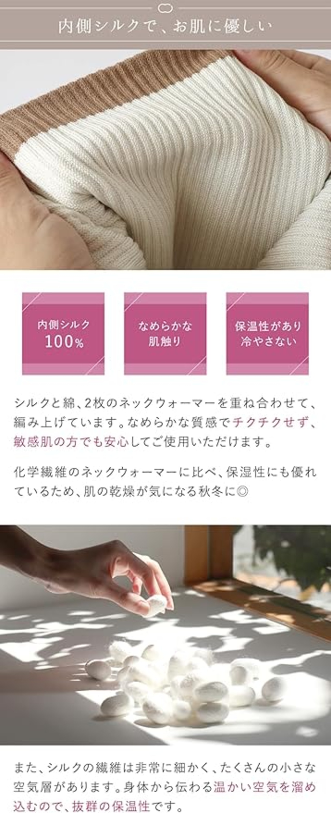 【絹屋】内側シルク 2重編み ふかふか綿ネックウォーマー (5381) サイズ:FREE(長さ 21cm~25cm)