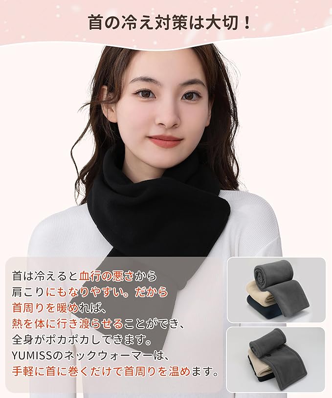 [YUMISS] ネックウォーマー レディース マフラー 【二重防寒防風構造・首元をしっかりカバー・首に巻くだけ着脱が簡単】 スヌード 暖かい 柔らかい 保温 寒さ対策 便利 自転車 プレゼント スカーフ ティペット