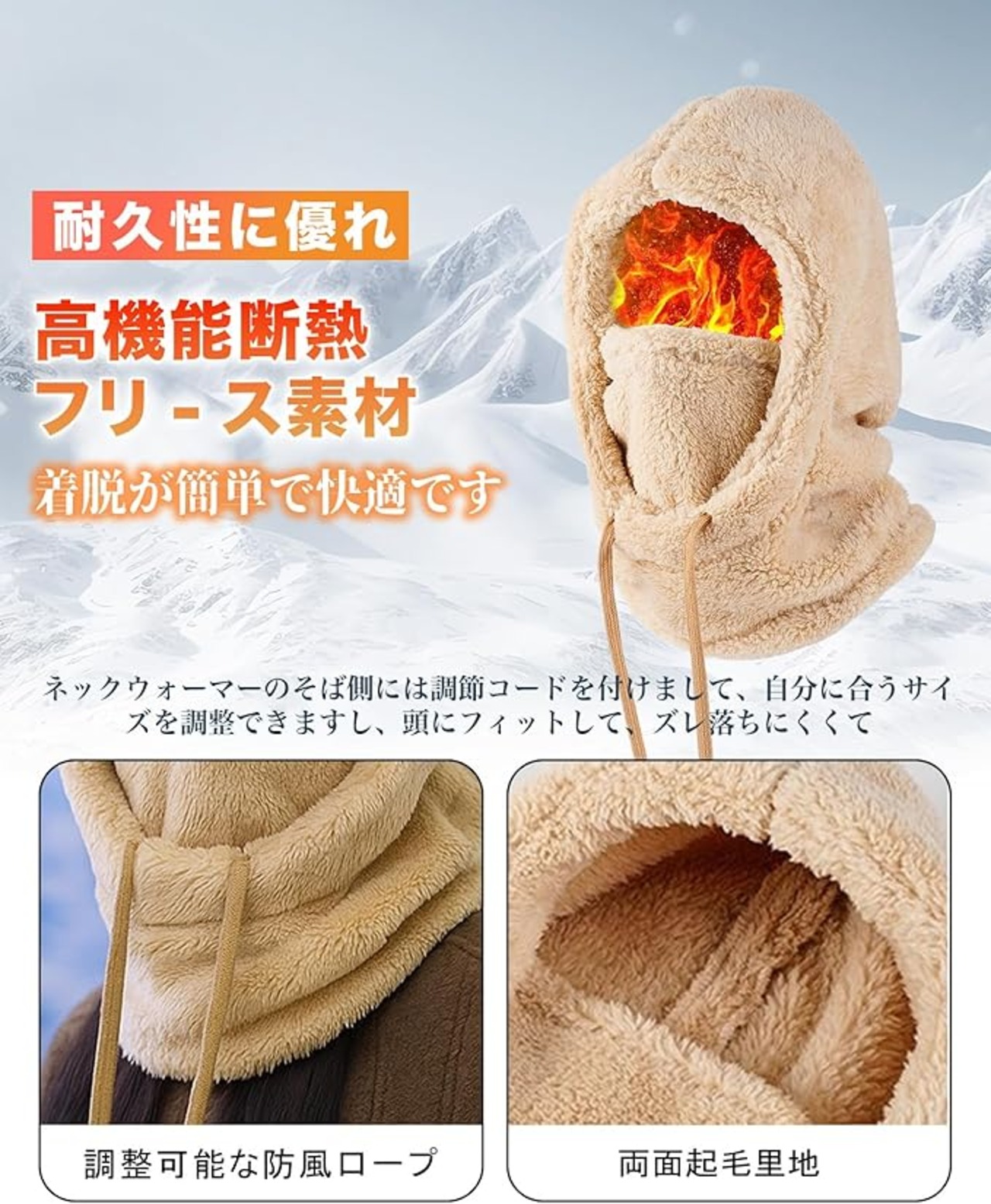 ネックウォーマー フェイスカバー 帽子 ネックガード 冬 メンズ レディース 極めた暖かさ 防寒 フードウォーマー ネックカバー 冬用 スキー 旅行 自転車 通勤 通学 男女兼用