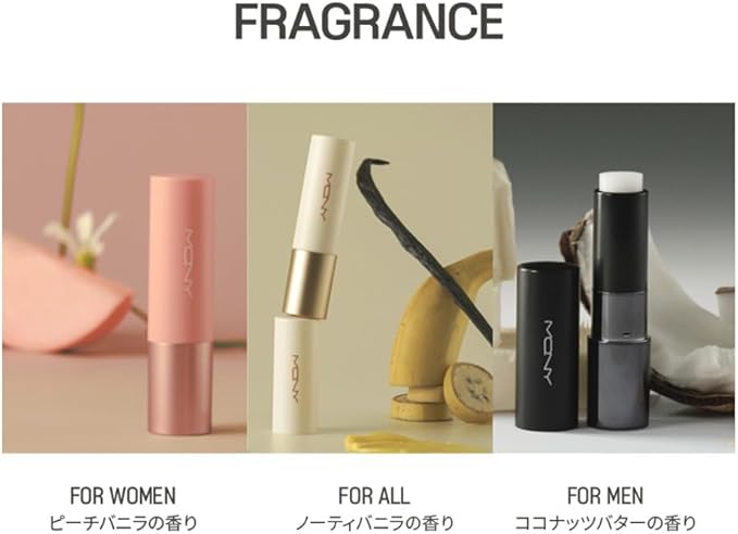 香りのバリエーション: ピーチバニラ、ノーティバニラ、ココナッツバターなど、さまざまな香りが楽しめます。