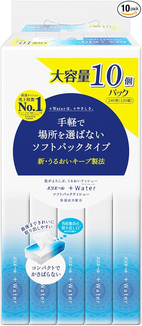 エリエール ティッシュペーパー プラスウォーター(+Water) ソフトパック 120組 10パック パルプ100%
