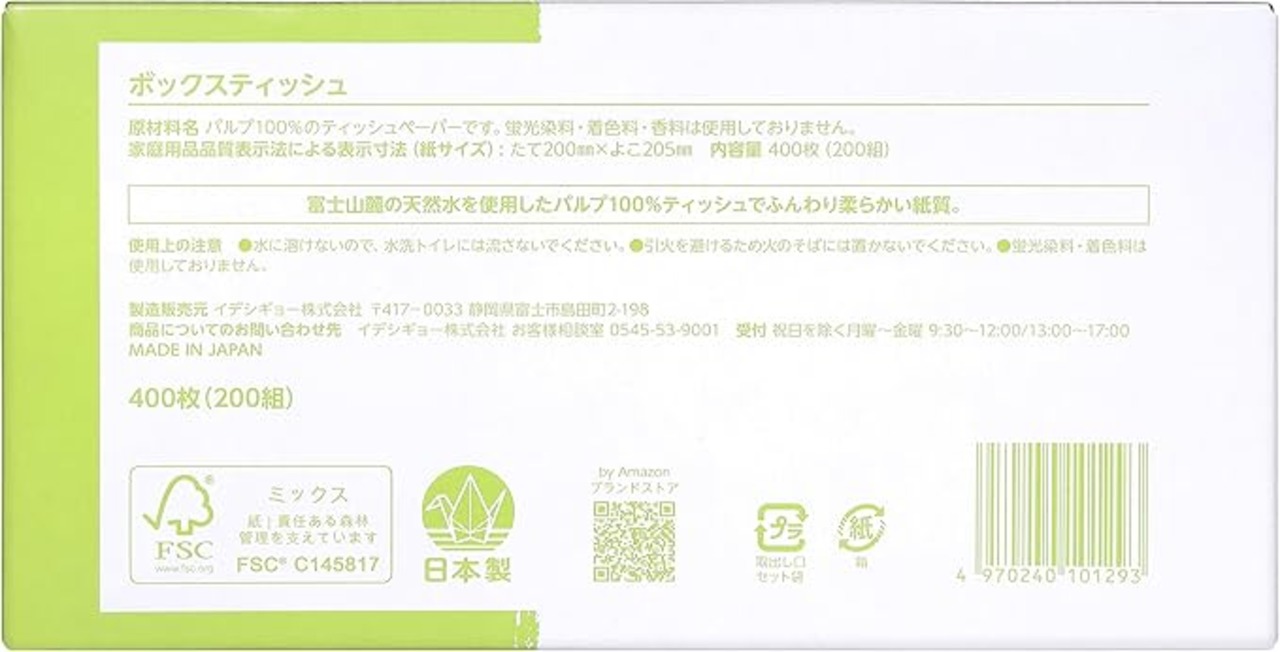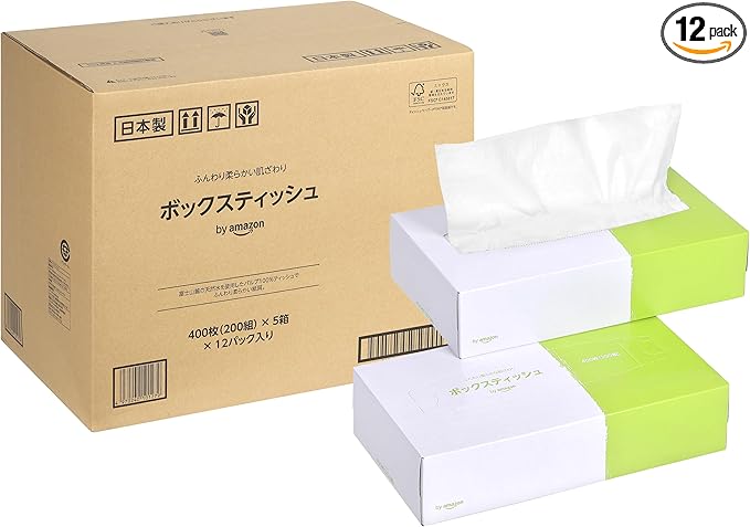 by Amazon ボックスティッシュ FSC認証紙 400枚(200組) 60箱入(5P 12パック)【ケース販売】