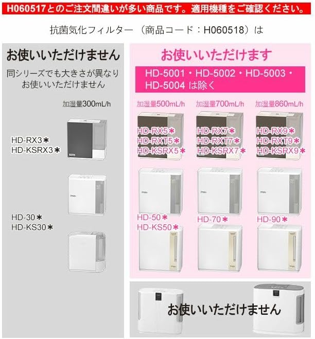 ■抗菌気化フィルター [ H060509 ] と [ H060511 ] は [ H060518 ] に統合となりました。