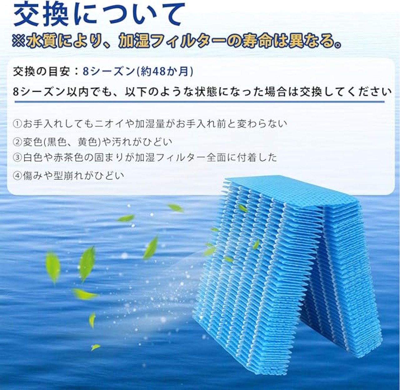 【交換の目安】約8シーズン(2年間)(水道水の硬度の違いにより寿命が短くなる場合がある。)