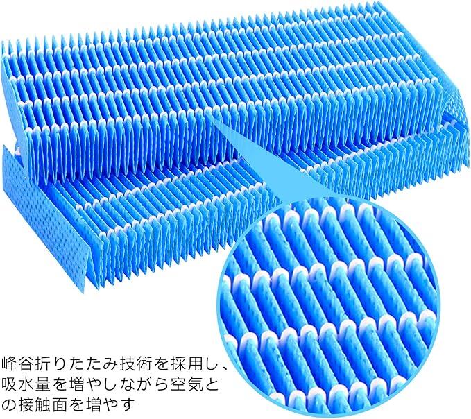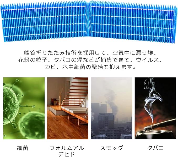 【原理と機能】峰谷折りたたみ技術を採用し、吸水量を増やしながら空気との接触面を増やすことで、空気中に水を広げることができる; 抗菌材料は加湿の過程で空気を濾過し、水中細菌、ウイルスを殺滅させ、加湿をより純潔にする。風邪の予防にも役立ちます。