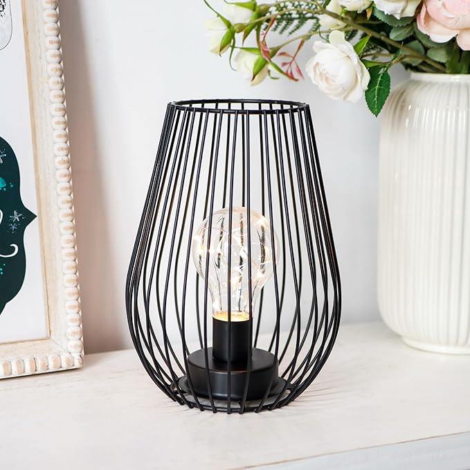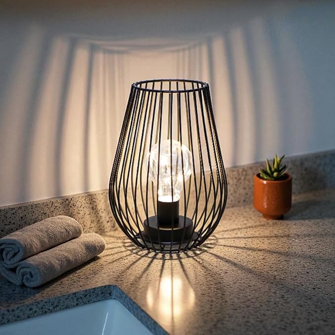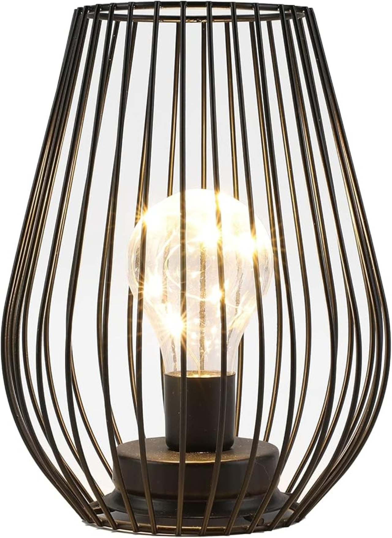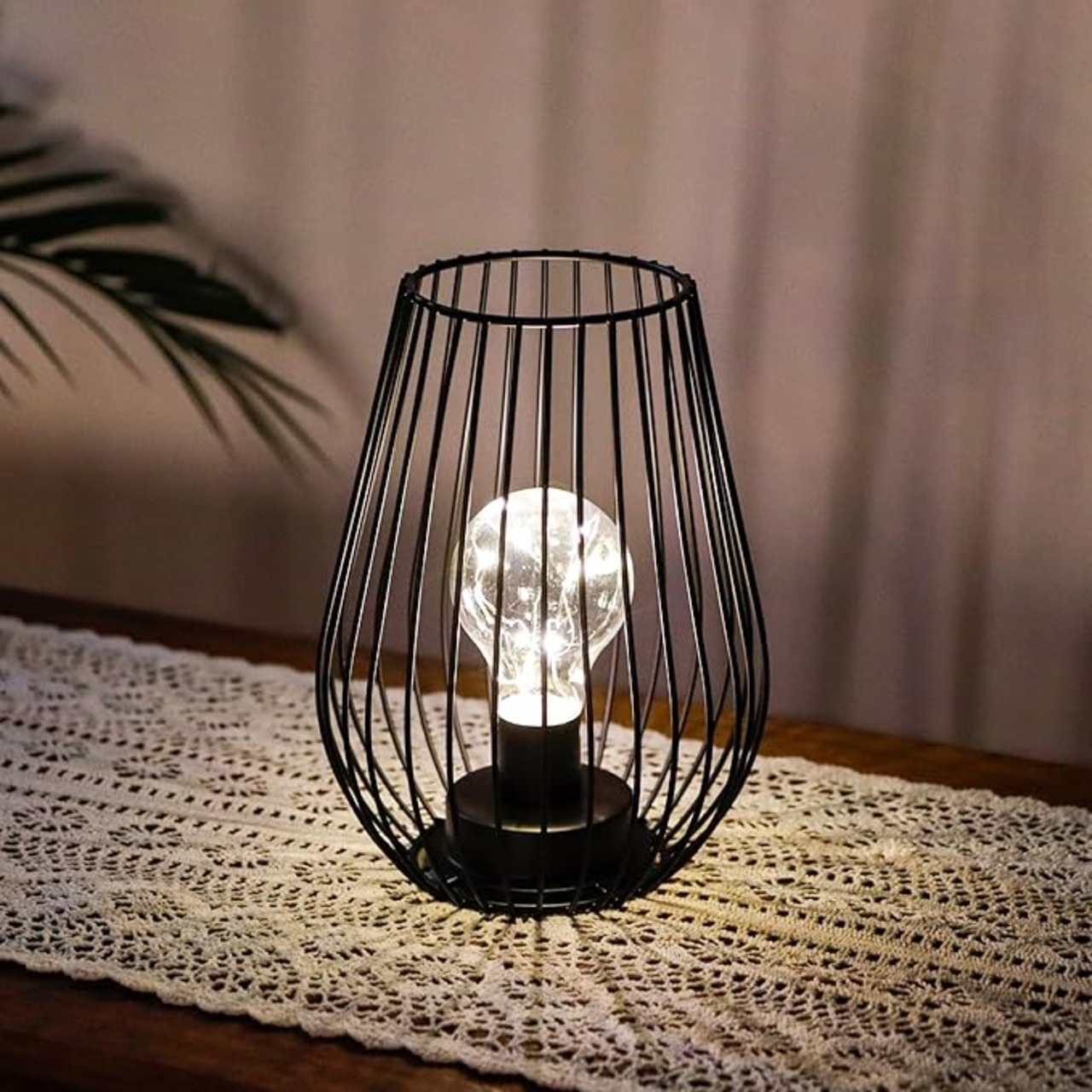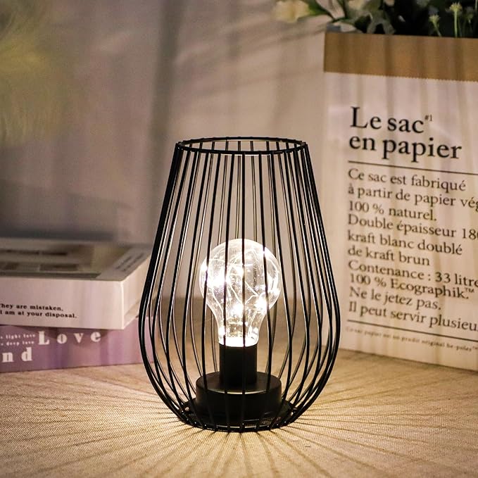 【おしゃれな卓上ランプ】温かみのある白いフェアリーライトと黒い鳥かごのデザインが、古い世界の魅力のオーラを醸し出します、シンプルなこのテーブルランプにフェアリーライトの黄色の光を輝いて、来客の目を引きます。薄暗い部屋でこのテーブルランプを点灯し、まばゆい黄色の光で心を癒やします。