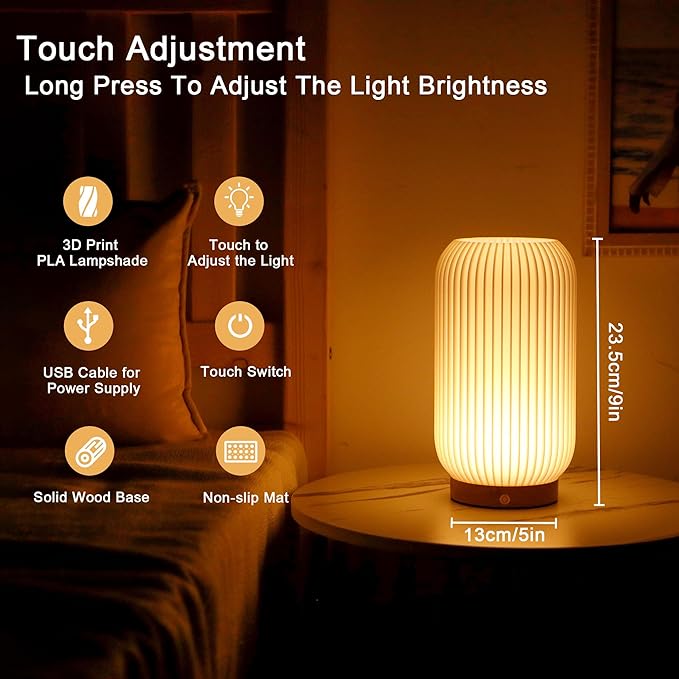 JHY DESIGN テーブルランプ 3Dプリント 木製ベース USB充電 タッチ式 ledライト 充電式 間接照明 寝室 おしゃれ 卓上ライト 読書灯 ナイトライト ベッドサイドランプ インテリア雑貨 寝室 ナイトスタンド 結婚式 パーティー テラス イベント 室内 室外用