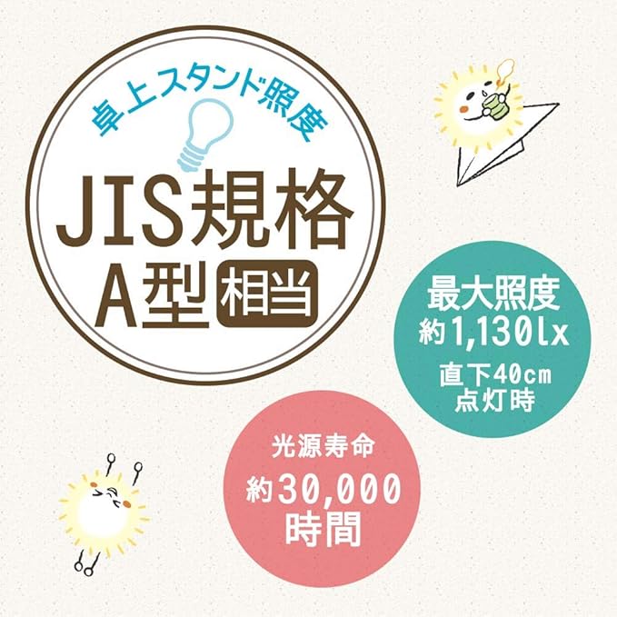 【光源寿命】約30000時間 【最大照度】約1130lx(直下40cm点灯時)
