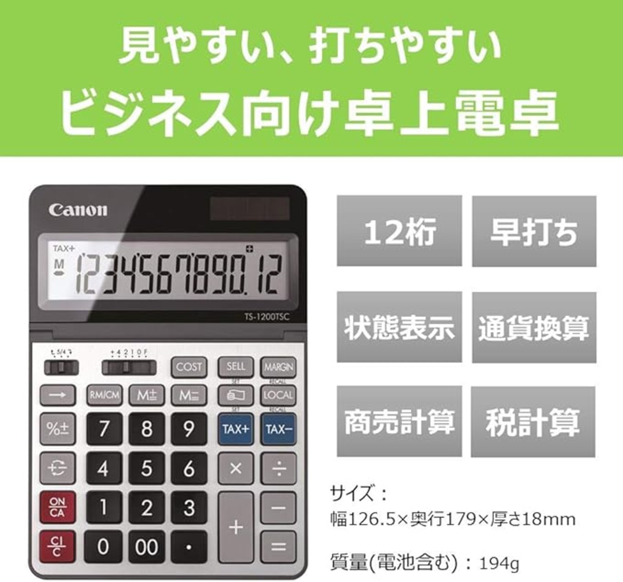 キヤノン 商売計算電卓 TS-1200TSC 12桁 大型卓上サイズ チルト液晶搭載