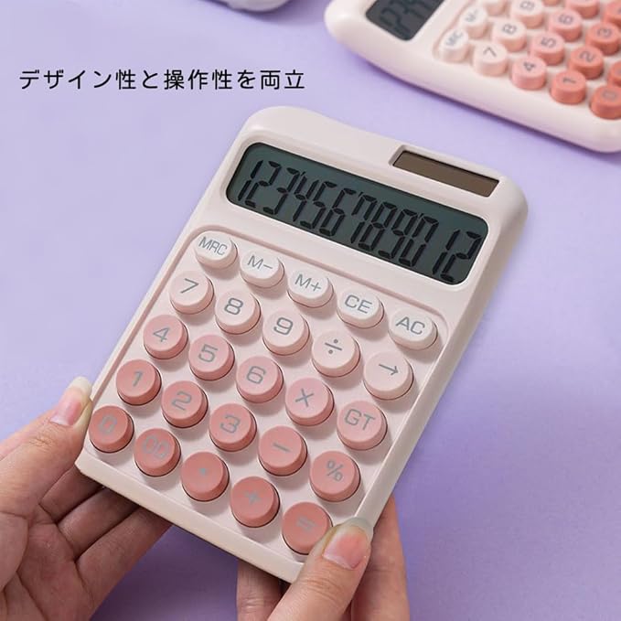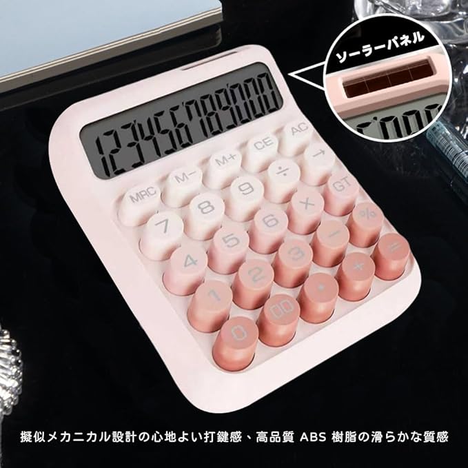 電卓 おしゃれ 12桁 計算機 かわいい 電卓 可愛い ソーラーと電池二重電源 大型ディスプレイ グラデーションカラー ミニ 丸ボタン メカニカルキーボード 持ち運び便利 滑り止め 税金会計 簿記 デスク オフィス 家庭 学校 ビジネス用(ピンク)