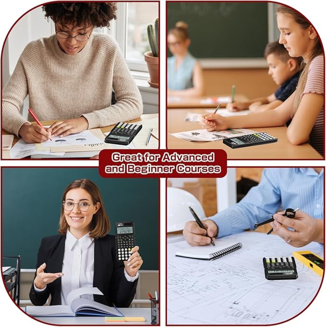 ②【スライド式ハードカバー付き】ハードカバー付き多機能関数電卓です。使用しない時はカバーをかぶせることができるので、本体、特にスクリーンを損傷から保護し、耐久性と寿命を保証します。関数電卓を使用するときは、スライド式ハードカバーを裏側に付けることができるので、紛失の心配がなく大変便利です