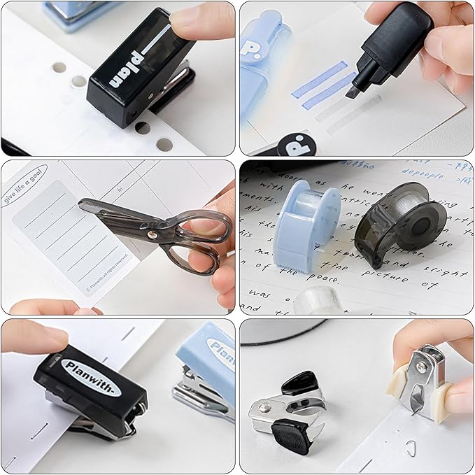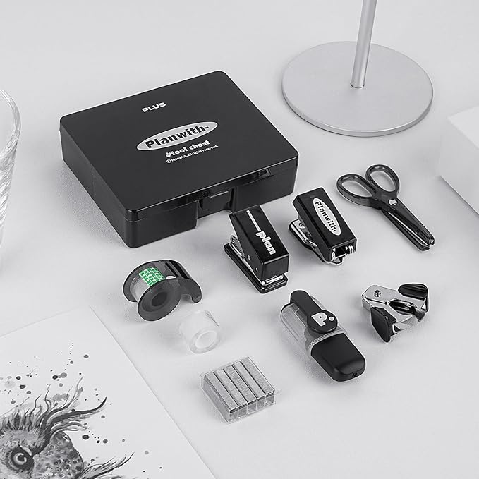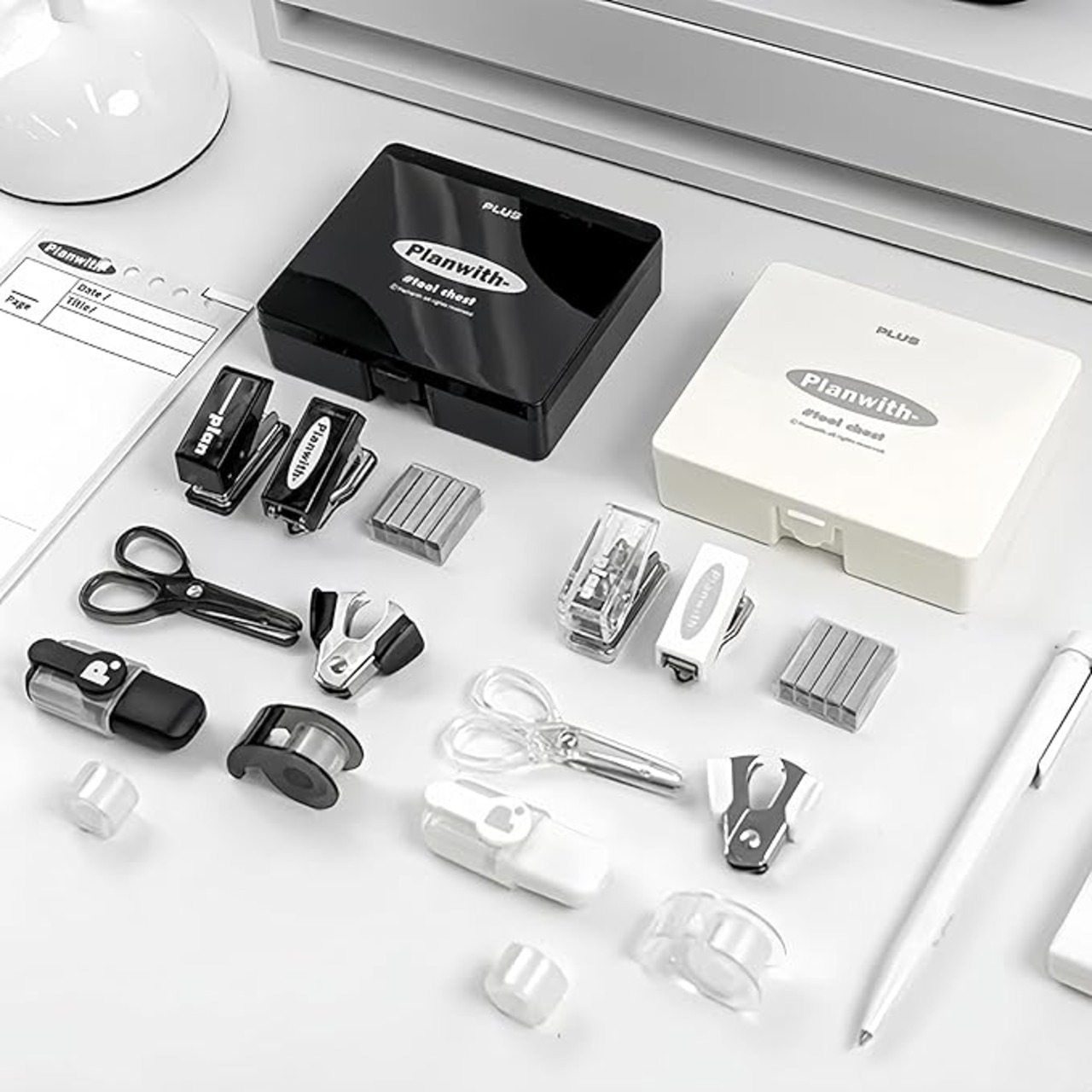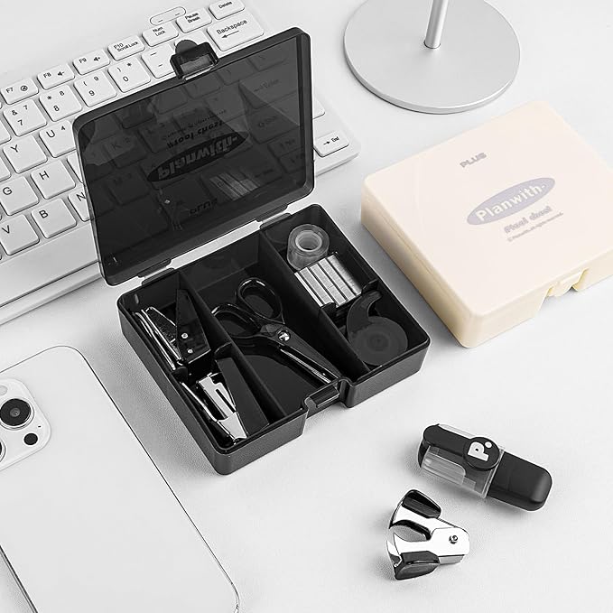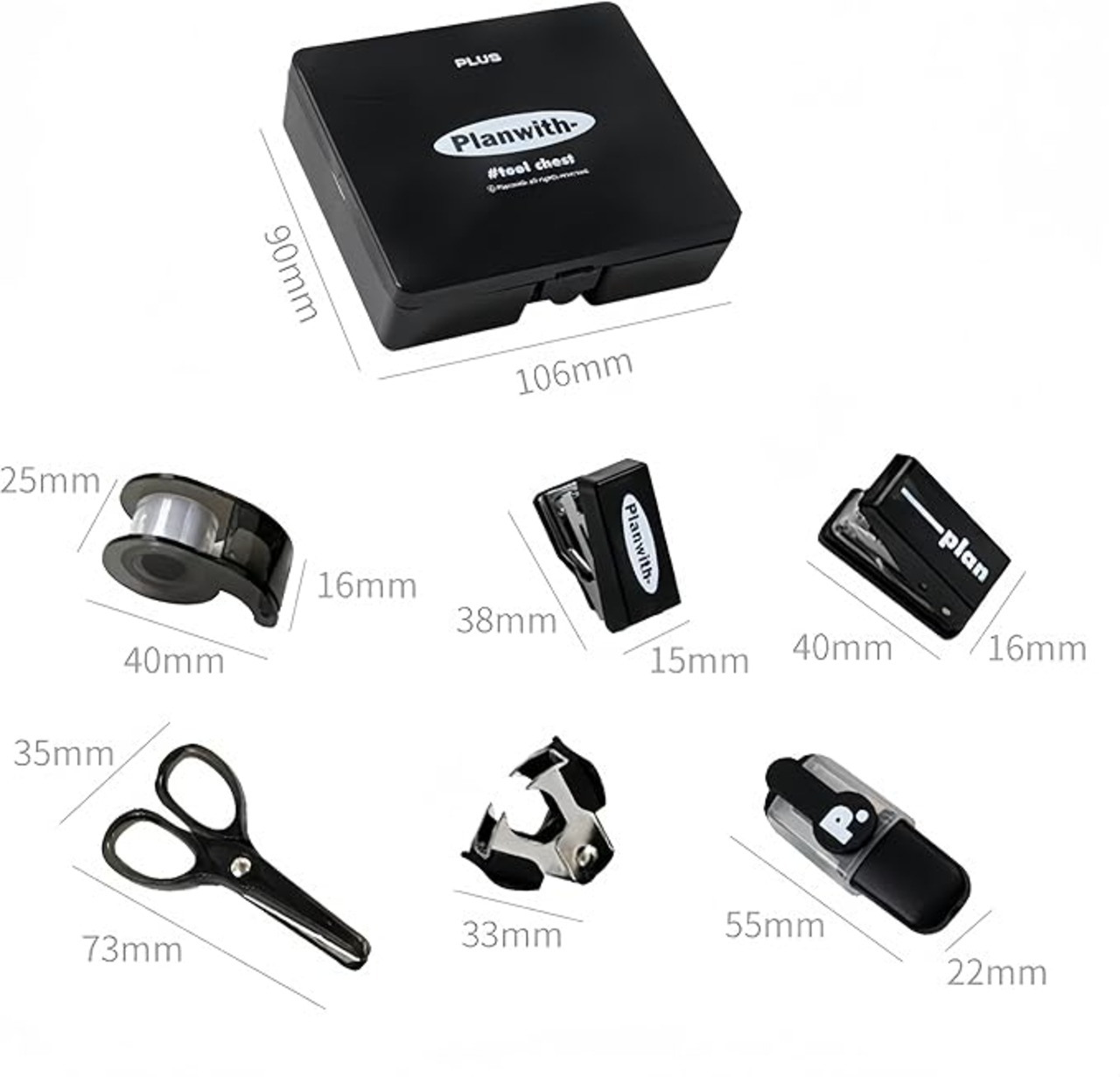 8点セット ミニサイズ オフィス用品キット - 持ち運び便利、効率的な仕事や学習に最適、収納ボックス付き 学生・教師・オフィスワーカー向け ギフトに最適(ブラック)