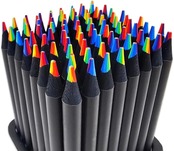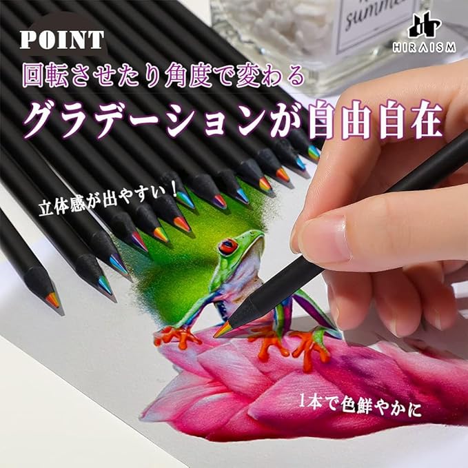 【鮮やかな色彩】1本で7色入りの色鮮やかな色鉛筆のセットです。赤・青・黄色・緑・オレンジ・シアン・紫の色が1本の芯に入っています。回転させたり、角度によって様々なカラーを描くことができます。通常の色鉛筆では描けない色の変化で、混色やグラデーションが自由自在。初めてのアートに挑戦する子供や初心者にもぴったり。色彩感覚を養い、アートや手工芸の楽しさを広げます。