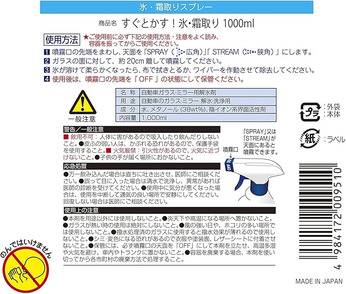 氷・霜をすぐとかす! 凍った窓ガラスにスプレーするだけ!-35度対応