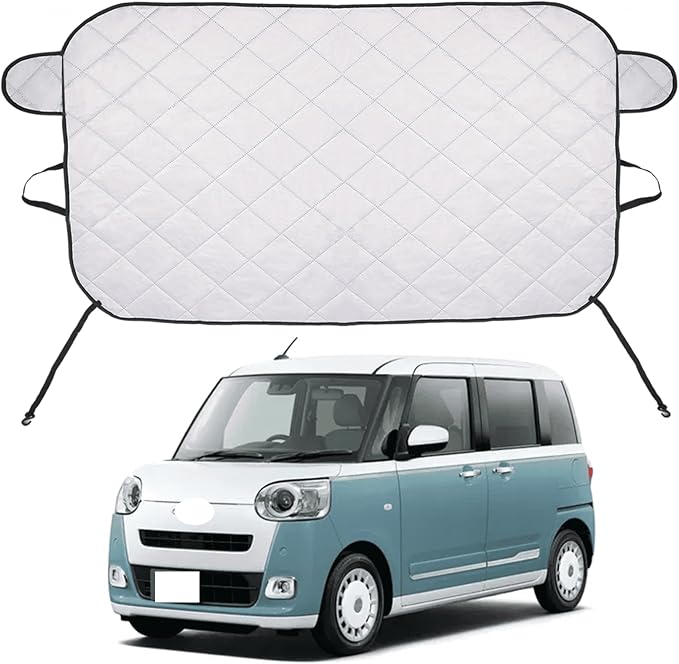 カーフロントカバー ダイハツ ムーヴキャンバス 2代目 LA850S / LA860S型 車用フロントガラスシート 凍結防止カバー 防雪 防霜 雪対策 積雪対策 厚手多層構造 撥水加工 UVカット 日よけ 遮光断熱 四季対応 取付簡単 盗難防止耳挟み式 折畳み収納 飛び石防止 黄砂・落葉・花粉対策 ワイパー保護