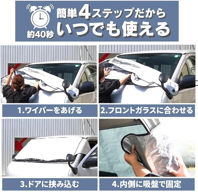 ・車内フロントガラスに吸盤を固定後、ドアを助手席→運転席の順番で完了です。