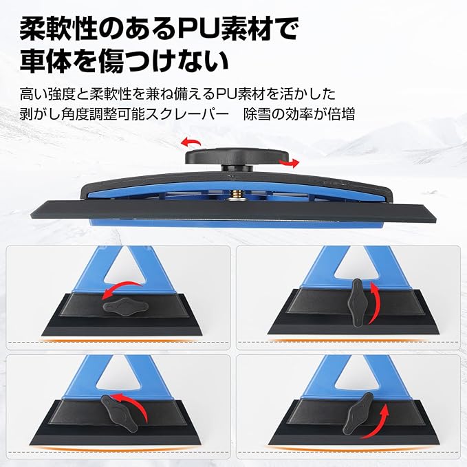 JOYTUTUS 雪かき 車 除雪 スコップ 滑り止めハンドル アイス スクレーパー スノーブラシ 多機能 角度調整 省力 ガラス 水切り ドライワイパー 車用 霜取り 除雪ブラシ 雪おろし スノースコップ 氷 雪 除去 雪対策 PU素材 擦り傷防止 小型 収納 省スペース ブルー