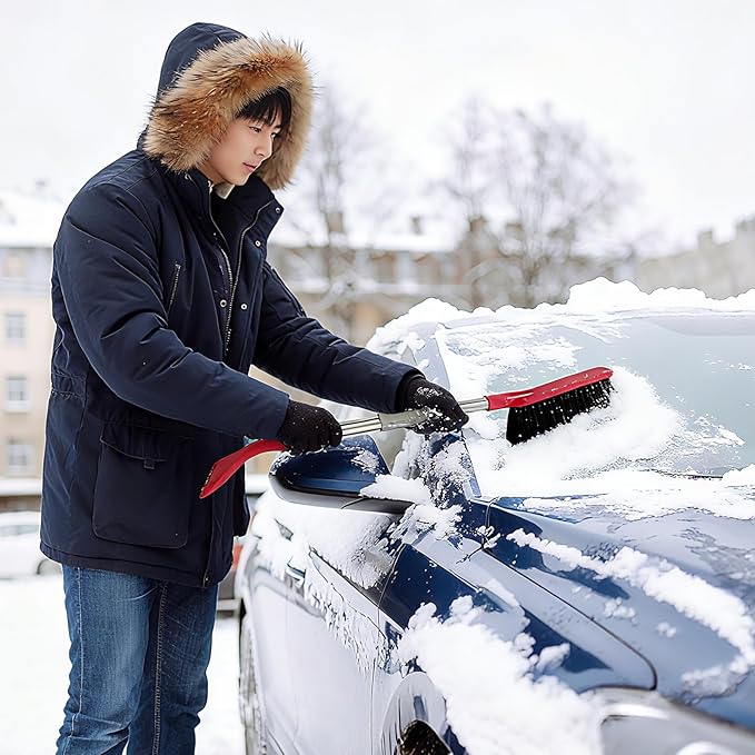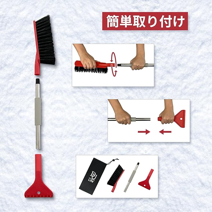 【1 本 4 季使える万能スノーブラシ!】秋の落ち葉、春の花粉、夏のホコリをサッと払い! 車はもちろん、玄関ガラス・ベランダもスッキリに仕上げる。除雪後は水洗い OK、スッと縮めればトランクの隙間にも収まるコンパクト設計!年間を通じて「雪・ホコリ・葉」すべてを 1 本で処理,収納もラク!明日の朝 5 分長く寝れる「時間節約神器」を、今すぐトランクに仕舞おう!