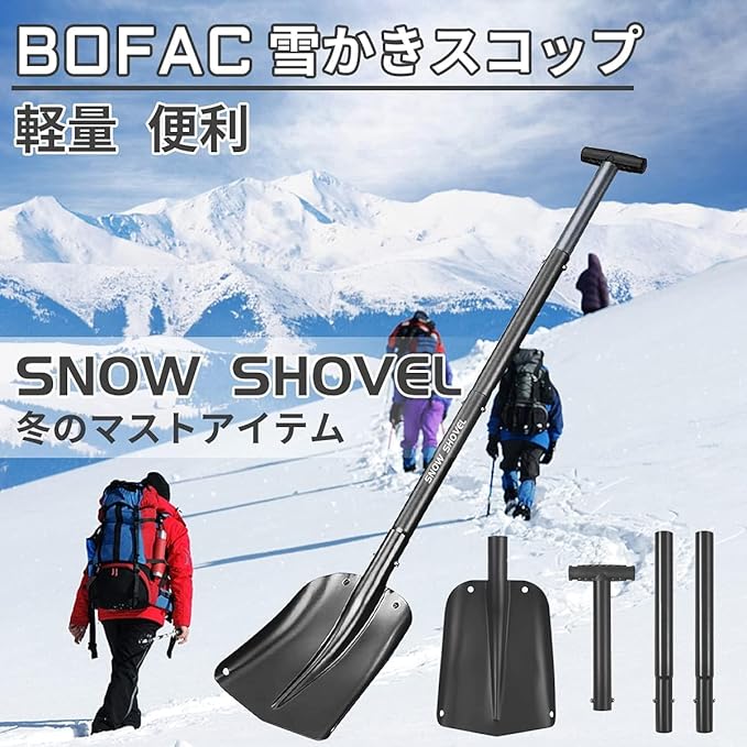 BOFAC 雪かきスコップ 除雪スコップ アルミ合金 108cm 長さ調節可能 雪かきシャベル スノースコップ スノーダンプ 組み立てが簡単 収納バッグ付き