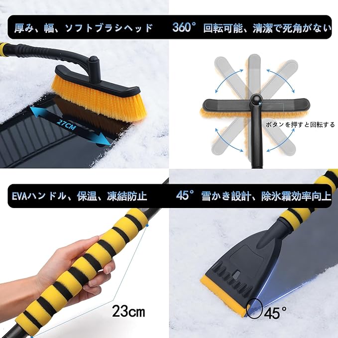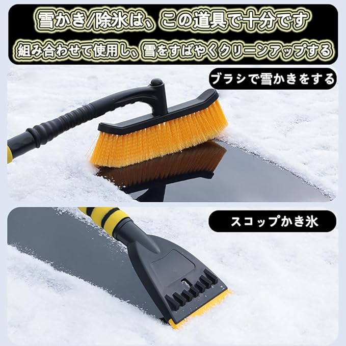 スノーブラシとアイスシェーカーを組み合わせた便利なツール。ブラシの長さは27 cmで、除雪幅を大きくすることができ、約11.5 cmのスコップで氷を容易に除去することができます。スノーブラシは全長約100 cmで、車の上部にも簡単に届く。
