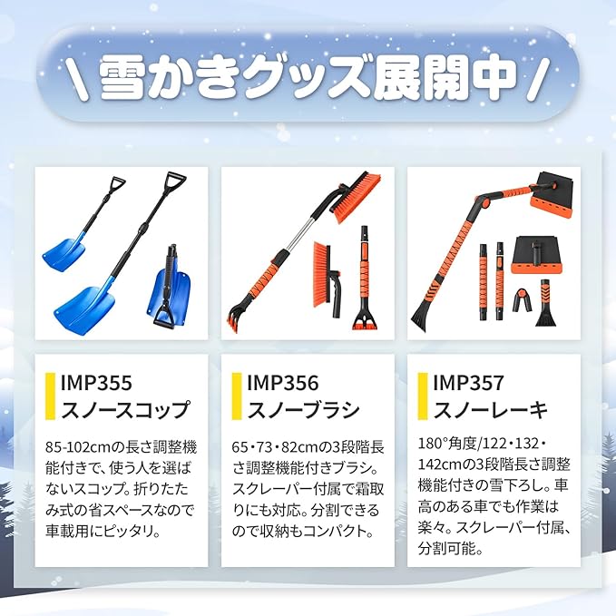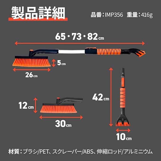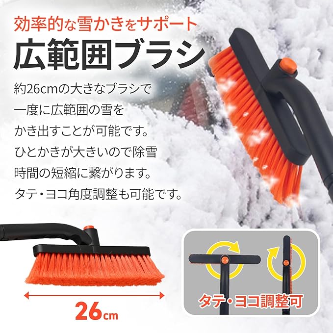 セイワ(SEIWA) スノーブラシ スクレーパー 除雪 雪かき 霜取り 雪対策 砕氷 車 車載 IMP356 伸縮 3段階長さ調整 65→73→82cm タテヨコ角度調整 ブラシ幅26cm スクレーパー 組み立て式 分割 収納 コンパクト EVAグリップ