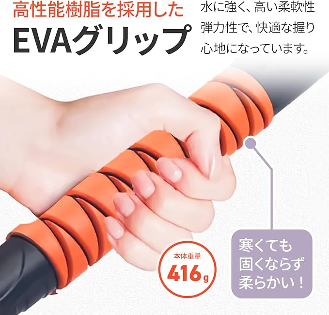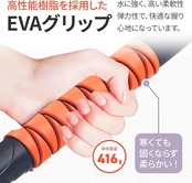 グリップ部分にはEVA樹脂を採用。高い柔軟性/弾力性で快適な握り心地になっています。