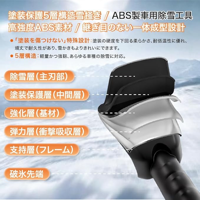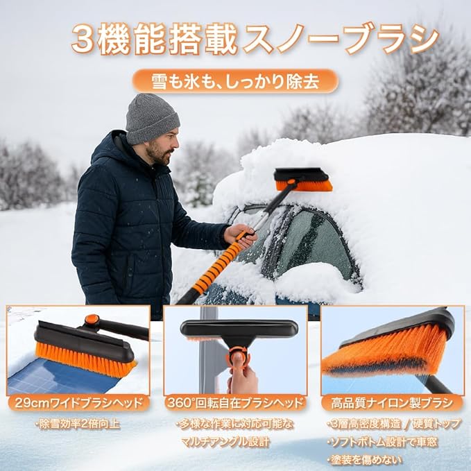 ⭐【塗装保護機能】約15mmのブラシ毛は軟化加工されているため、明るい色合いと軟らかい仕上げになっています。これによって自動車の塗装を傷めずに使用できます。4重仕様で密度が高い毛は広範囲な除去作業を可能にし、短時間で完ぺきな除雪を実現します。