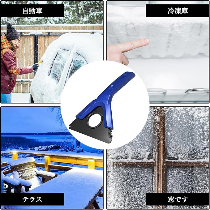 車スノースクレーパー アイススクレーパー 車用雪かき 霜取りへら ABS 滑り止めハンドル 小型便利 高性能 軽量 雪 結氷 除去用具 車雪落とし ボディフロントガラス用 冷凍庫用 霜取りツール ウインターグッズ(青)
