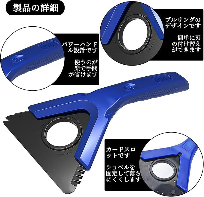 【車スノースクレーパー】スタイリッシュなブルーのデザインの車スノースクレーパーは、実用的であるだけでなく、見た目も魅力的です。車のガラスについた霜や氷を簡単に取り除くことができるように設計されています。その高性能は、氷や雪を素早く除去する能力に反映されているだけでなく、運転中に車の塗装やガラスに損傷を与えず、安全で効率的な除氷体験を提供します。