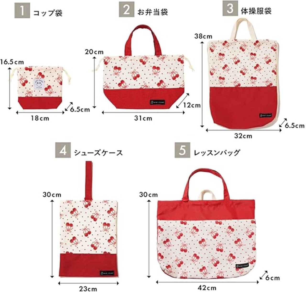 [ever closet] レッスンバッグ 5点セット 入園入学セット 女の子 入園入学準備 手提げ袋 上履き入れ 体操着袋 お弁当袋 コップ袋 子供 キッズ エバークローゼット