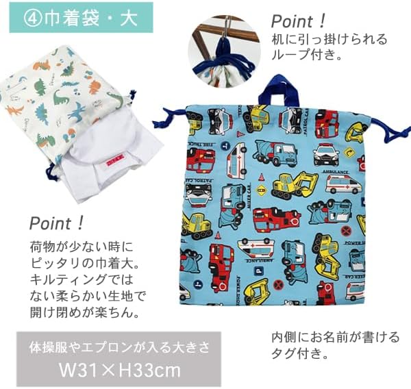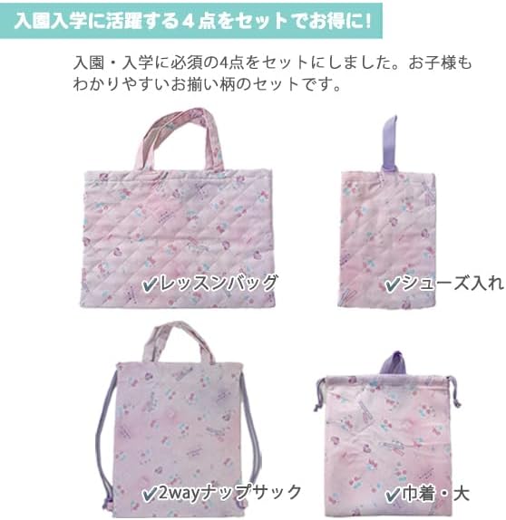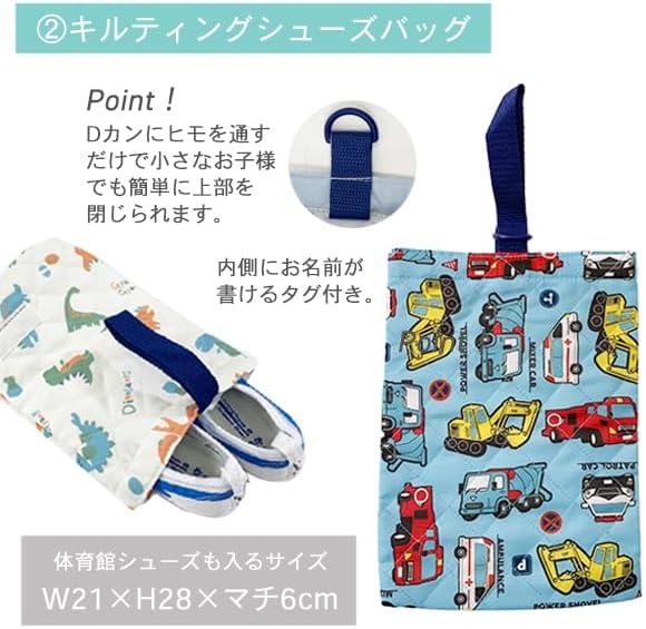 入園入学バッグ 4点セット 男の子 女の子 キルト バッグ シューズ 巾着 小学校入園入学に必要な4点をお得なセットにしました。 小さいお子様でも分かりやすいお揃いの柄のセットです。様々なシーンで長くご愛用いただけます。