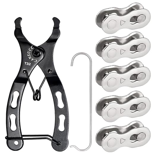5ペア 自転車チェーンリンク スチール製 6/7/8 スピードチェーン バイクチェーンコネクタ 軽量 ミッシングリンク アクセサリー + 自転車チェーンプライヤー スチール製 修理工具 オープンクローズチェーン用具 取り付け・取り外す 自転車用 チェーン切り 工具