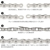 使用回数:不適切なピンの取り付けによって引き起こされるリンク切れやチェーンの破損は避けてください。 使用回数に限りがありますので、5回以内の取り外しと取り付けをお勧めします。