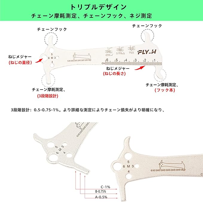 FLY_H チェーンカッター 自転車チェーンチェーンチェッカー 取り外しと取り付け +チェーンカッター+道路車 3-in-1 チェーン摩耗検出ゲージ (ネジ測定、チェーンジョイントクランプ機能付き)、 マウンテンバイク チェーン本 ほしゅようじょう ツール