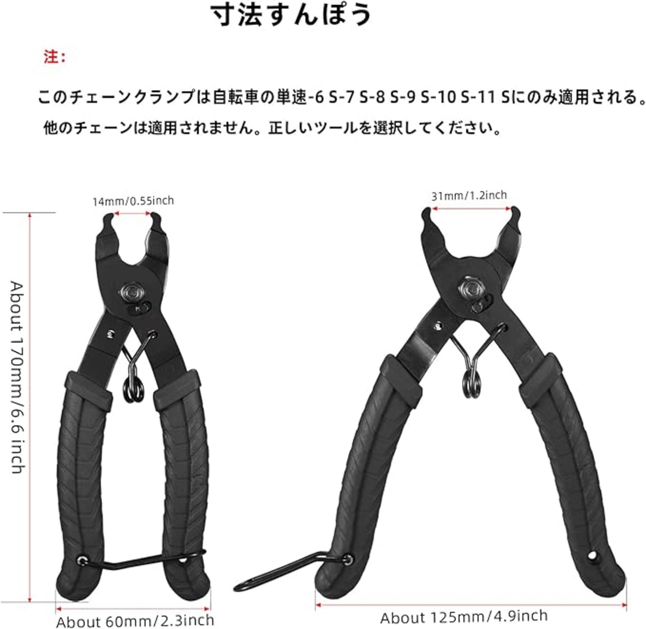 2.チェーンカッター ;自転車、高品質高炭素鋼強度高耐食性耐食性、適用:単速、6/7/8/9/10/11速、各限定商品自転車チェーン。動く取っ手のデザインは取り外しの力が把握しやすく、注意:自転車チェーンにしか使用できず、他の交通機関チェーンは使用できない