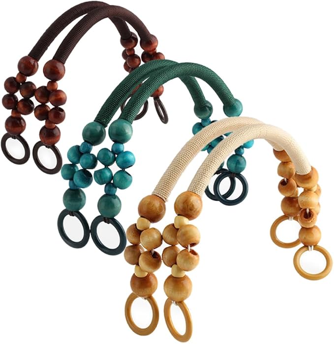 持ち手 木製 ウッドビーズ付き 6個バッグの持ち手 ナイロン紐 ハンドル交換 バッグ 持ち手 ハンドメイド DIY 手芸 バッグ用 修理 交換用 3色 各2個