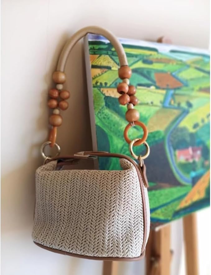 【簡単な取り付け】取り付けはシンプルで迅速です。ハンドルはバッグにしっかりと固定されるため、緩むこともなく、安全にお使いいただけます。木製ビーズが加わることで、バッグにユニークなファッションタッチを施します。