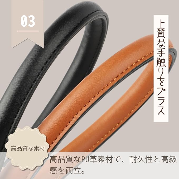 【高品質な素材】PUレザーを使用しており、本革に近い質感を持ちながらも耐久性が高く、長期間の使用に耐えます。頻繁に使用するバッグの持ち手を強化し、耐荷重性を高めることができます。