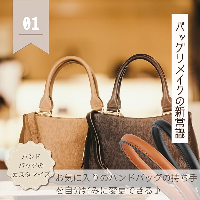 【ハンドバッグのカスタマイズ】長年使用して傷んだビジネスバッグの持ち手を交換、お気に入りのハンドバッグの持ち手を自分好みに変更し、オリジナリティを加えることができます。