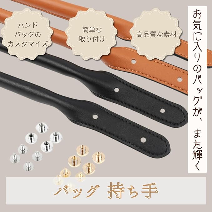 【簡単な取り付け】バッグの金具部分に持ち手を通し、付属の専用ネジをドライバーで締めるだけで取り付けが完了します。特別な技術や工具は不要です。