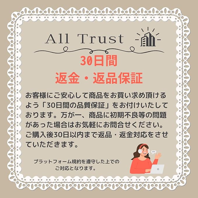 【安心の30日保証】All Trust限定商品より、オリジナルパッケージで迅速にお客様の元へお届けいたします。また本製品は購入から30日間の返品保証付きとなります。