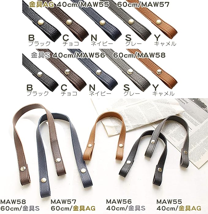 日本紐釦貿易(Nippon Chuko) エンボス加工 ホック式かんたん付け替えハンドル AG/60cm 2本1組入 MAW57-C 手芸用品 バッグ材料 持ち手